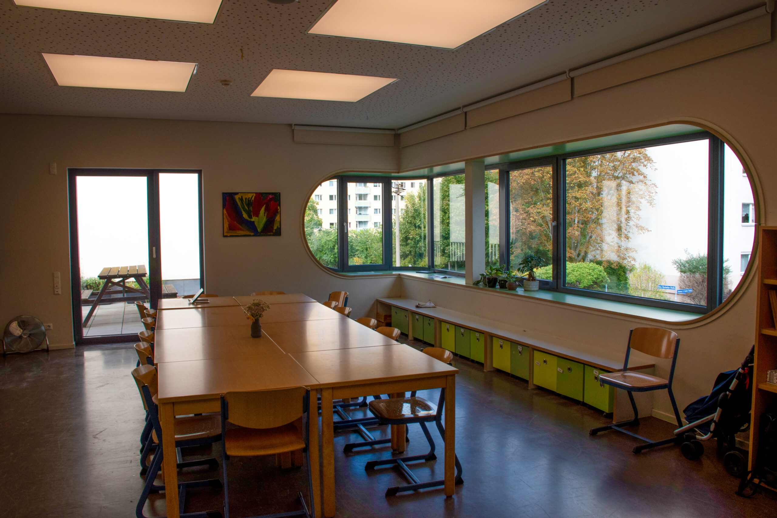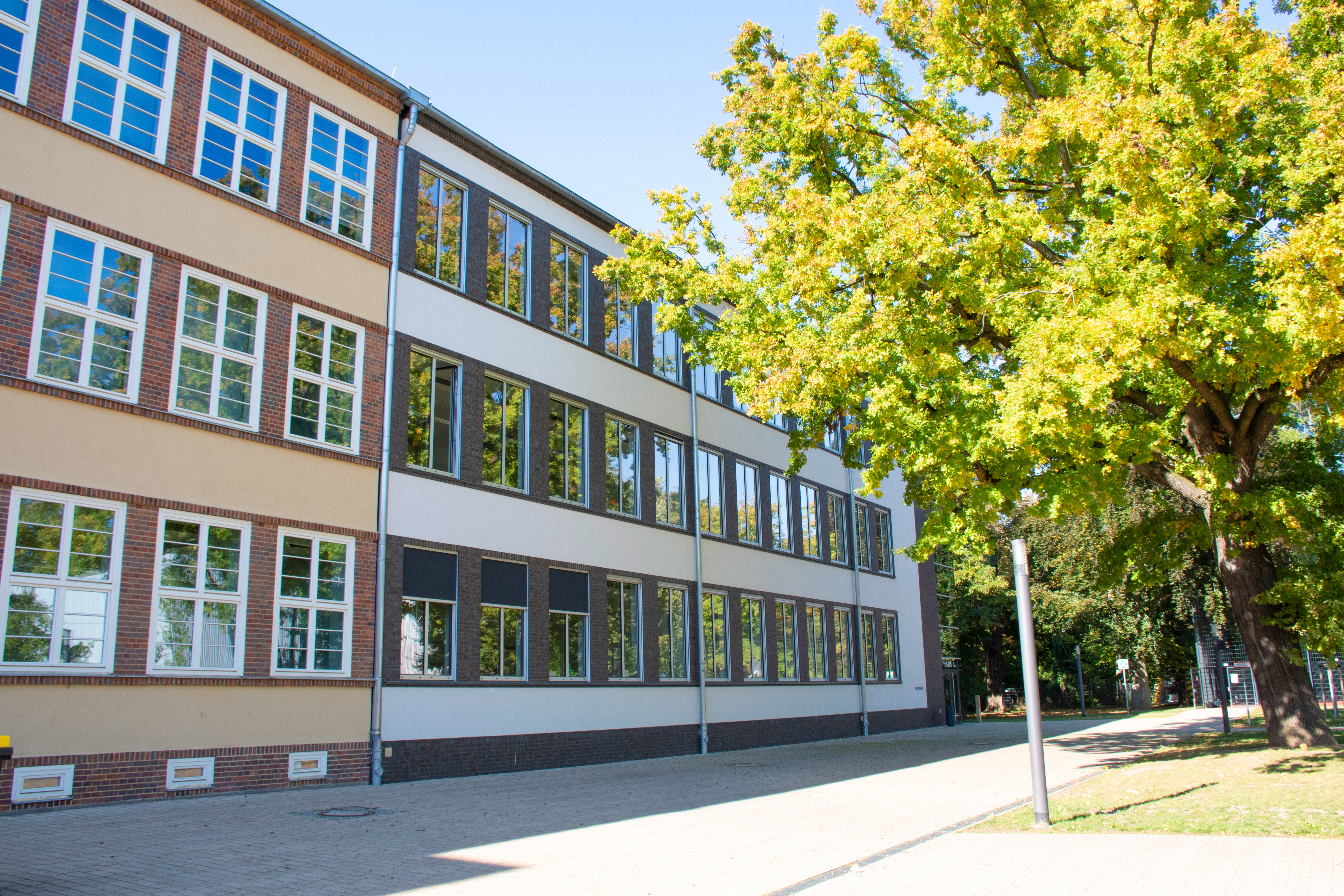 Vom Plattenbau zum bunten Lernort — In mehreren Bauetappen wurde das Werner-Vogel-Schulzentrum bis 2022 schrittweise neu gestaltet. Dadurch entstanden unter anderem zwei moderne Klassenzimmer. Vom damaligen Plattenbau ist heute nichts mehr zu sehen.