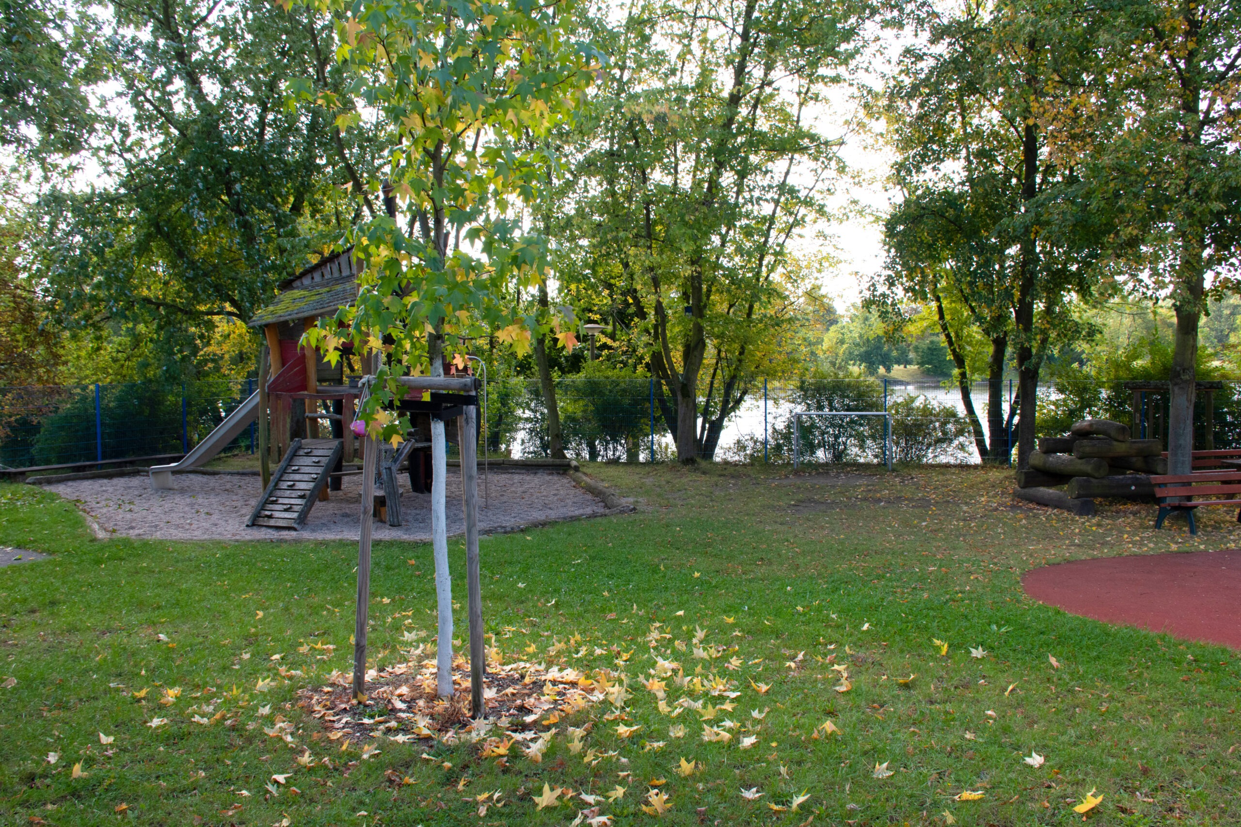Haus am See — Kinder und Jugendliche des Werner-Vogel-Schulzentrums nutzen neben dem Schulhof auch den benachbarten Erholungspark am Großen Silbersee. Nachhaltigkeit und Umweltpflege gehören zum pädagogischen Credo der Schule.